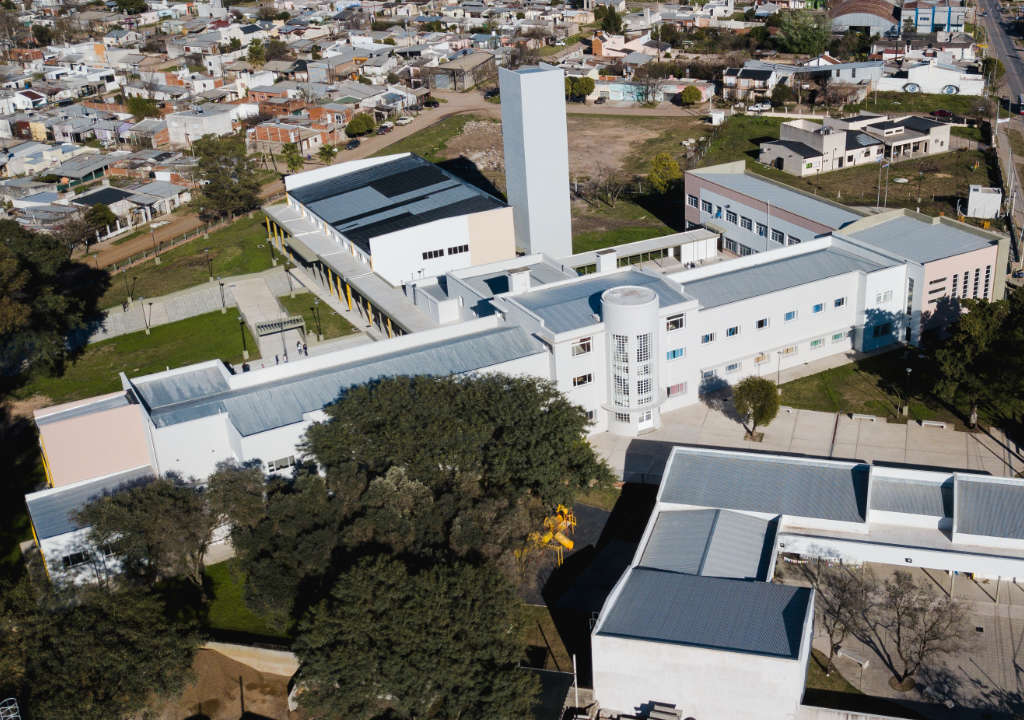 Construcción del nuevo edificio de educación formal y sector talleres en PB, 1er y 2do Piso. Estructura mixta de HA con losas de steel deck y cerramientos de cerchas metálicas sostenidas sobre columnas metálicas. Incluye aulas, sum, galería, sanitarios, laboratorios, electricidad, informática, oficina técnica, deposito general. Superficie total 8530 m2