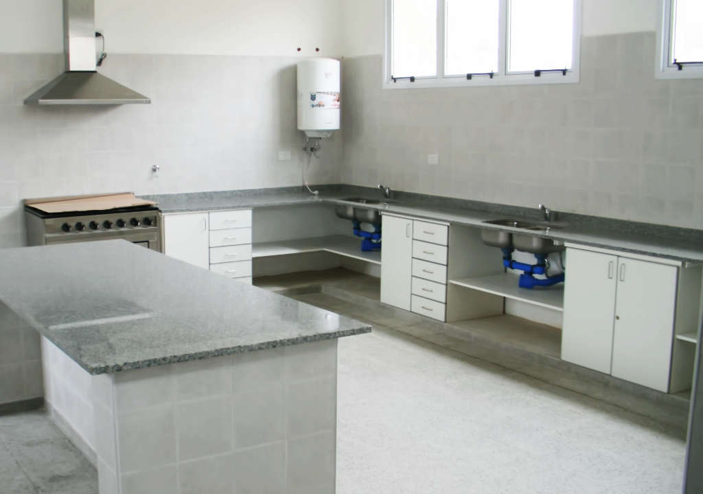 Escuela de Nivel Medio, en una planta, 12 aulas, Salón de usos múltiples de doble altura. Sectores de servicios y administrativos. Estructura de Hormigón Armado, muros de bloques de cemento. Pisos de Hormigón armado y Granito. Instalaciones de servicio contra Incendios. terminación en revestimiento plástico texturado.