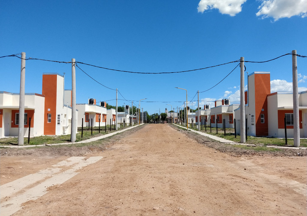 Construcción de viviendas completas con obras de infraestructura para red de agua, desagües cloacales, distribución aérea de energía eléctrica, alumbrado publico, apertura y mejoramiento de calles.